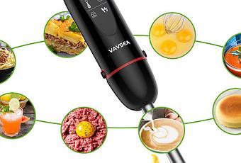 The VAVSEA immersion hand blender has a sleek stainless steel body that is both stylish and scratch-resistant. And with its exclusive stainless steel blade, certified by experts and chefs, blending even hard foods is a breeze. Plus, cleanup is quick and easy. This handheld blender is perfect for efficiently chopping hard ingredients and giving you a unique culinary experience. It's a must-have addition to any kitchen!