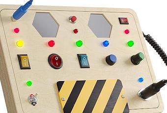 Montessori Busy Board / Wooden Sensory/ Fidget Toy with Light Up LED Buttons Pluggable Wires