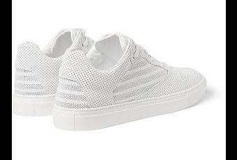 It's wing-tip and basketball sneaker tooling run amok. Balenciaga's new Perforated Leather Sneakers take tooling leather that resembles mesh and has cool edgy fun with it. Every inch of the entire white leather upper is perforated in varied linear and spacial patterns to end up with a tonal and textural unique sneaker all set onto a sturdy white rubber sole. Available now at Mr. Porter.com.