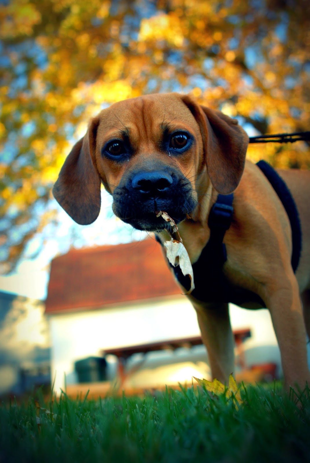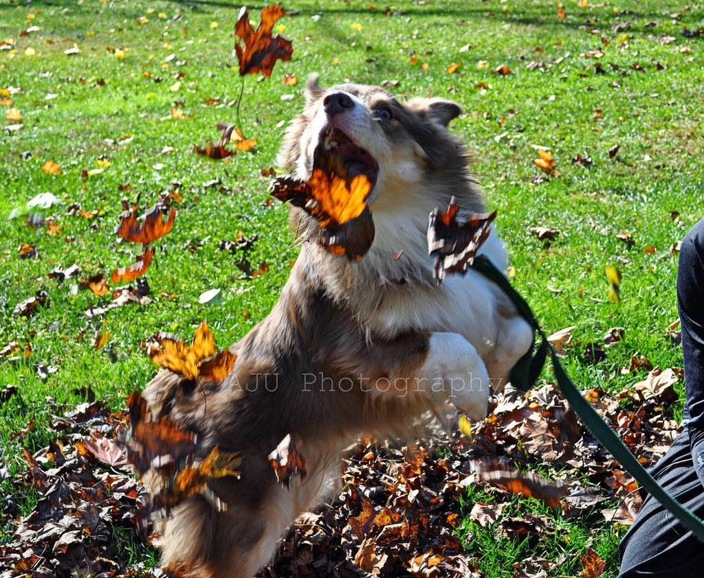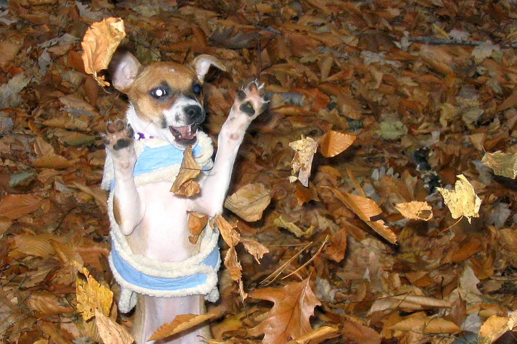 Remember when you used to play in the leaves? Sometimes our pets love something just as much as we do! These dogs are outside enjoying the fall weather and colorful leaves that coat the ground.
