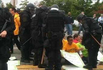 A small group of Walmart employees were protesting holding small cardboard signs when suddenly, the Riot police arrived to arrest them. Seems like they were too dangerous for a couple of cops to handle. It’s like taking a sniper rifle to a close-quarter combat.