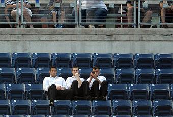 the following picture is from the New York Times article about the Yankees drawing smaller attendance this year in Yankees Stadium... somehow these 3 yeshiva boys had the fortune of being front and center...