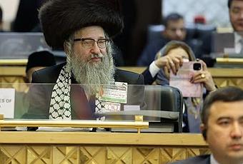 That is Yisrael Dovid Weiss of the Neturei Karta from Monsey participating in a conference supporting Hamas in Tehran, Iran on Shabbos