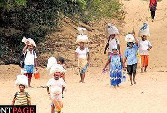 Nearly 5,000 pilgrims from Northern and Eastern parts of the country are arriving at Kataragama using jungle routes through Yala National Park for the Esala festival to be held at Ruhunu Maha Kataragama Devalaya from 29th July onwards. Picture K.D.Devapriya