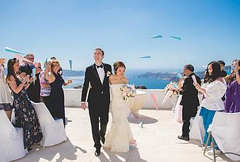 Pink and Blue Wedding in Santorini | Stephanie & Sven