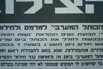 But now, the Haredim are preparing in advance and trying to rally the troops. The pashkevil below has been posted around Jerusalem. It calls on "anybody to whom is important the place the shechina has never left" to come to thee Kotel on Rosh Chodesh at 7 AM and protest the desecration of the holy place.