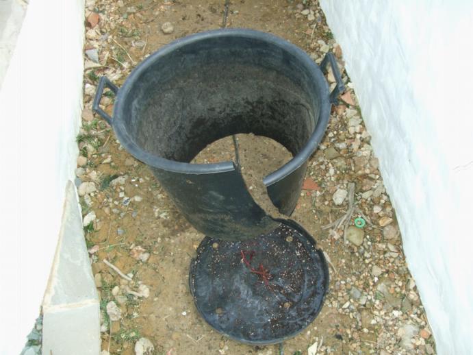 I cut the bottom off the pot with a Stanley Knife and as the pot doesn't have vertical sides we were able to lift it into the hole using the pots handles and then slice the side of the pot to get it out of the hole.