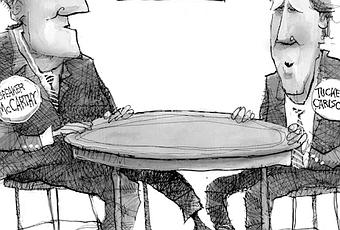 Playing FootsiePolitical Cartoon is by Matt Davies in Newsday.