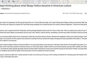 Let me explain.  Writers in my category (struggling, probably neurodiverse) really want to reach readers.  I want to paste the whole email into this email but before I do let me say that I Googled the “person” it was from and found a legitimate individual in the NYC area, generally.  I also Googled the NYC Philosophy and Psychology Reading Group; it actually exists.  It’s a MeetUp group.  They don’t have a website.  I checked all of this before responding.  Please read on!  I will explain the warning signs and what I realized only later.  Here is the text of the email: (go to Full Essays to read more). If you cannot access Full Essays from another website (e.g. Facebook or Goodreads), please go to steveawiggins.com to get to it (I have no idea how WordPress works!)