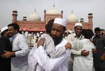 In Pakistan, the holiday is celebrated with great enthusiasm. Families get together to greet each other, share meals, and help the poor.