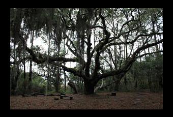 Under blue skies, the live oaks were just trees - hearty and expansive trees.