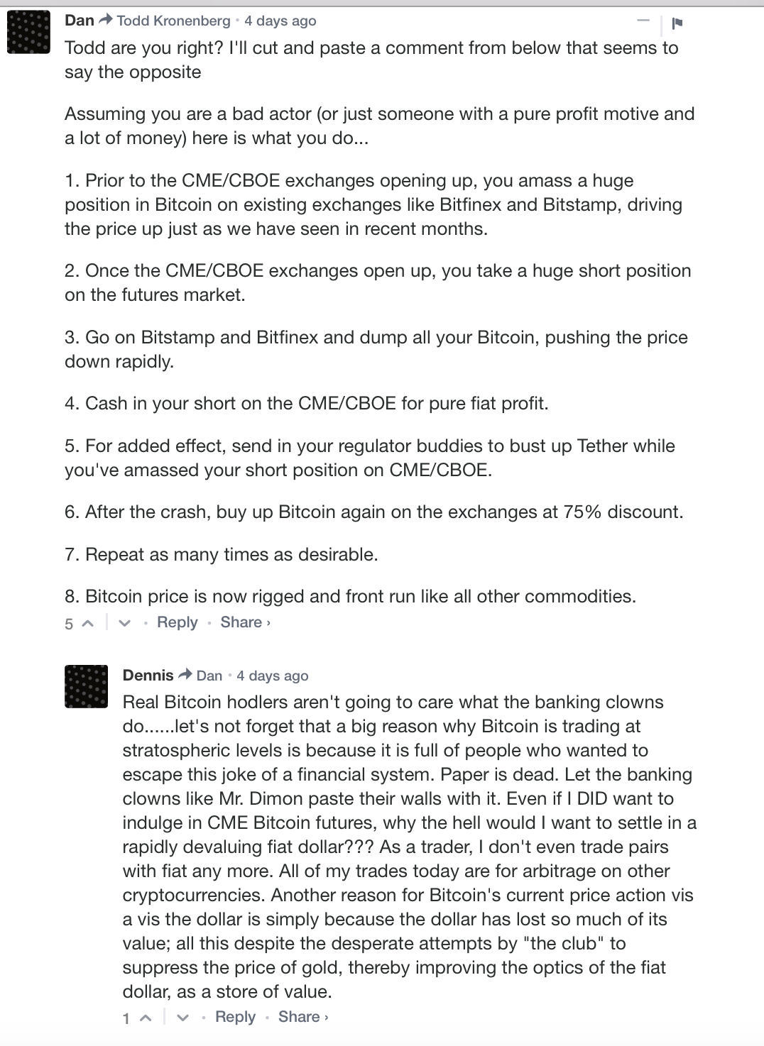 "They create markets out of thin air and run a casino Las Vegas probably idolizes. All the while they say everyone else is some sort of immoral degenerate gambler. But yeah, the CME futures for Bitcoin have nothing to do with actual Bitcoin."