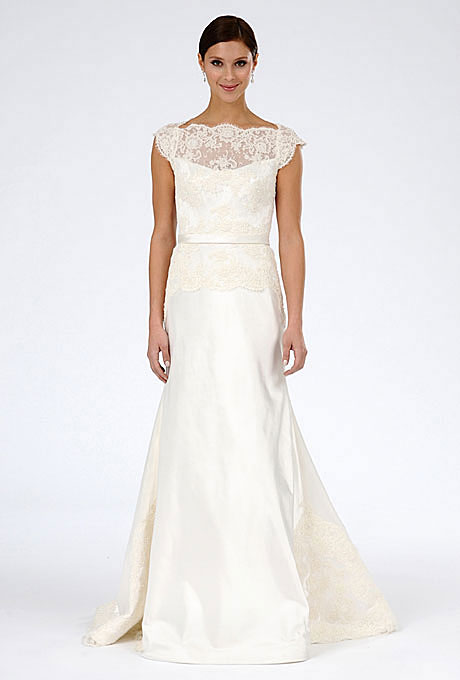 This is a neckline that's staple in almost all women's wardrobe. So, if this is worn on the day of wedding, it won't make one look ugly. There is a reason why v-neck's are so popular. It can elongate the silhouette with an illusion of arrow being pointed down. It makes round face shapes look oval. Petite brides look taller when they wear v-neck wedding dresses. How much skin you want to show can also be very well decided if you choose a V-neck gown. When a v-neck is combined with a draped, wrap bodice, it becomes the hourglass gal's best pal. If you think that a standard v-neck is very much ordinary or casual for such an auspicious occasion, dresses that come up with laces on top of the neckline can be your pick then. It creates a pretty and soft pattern.