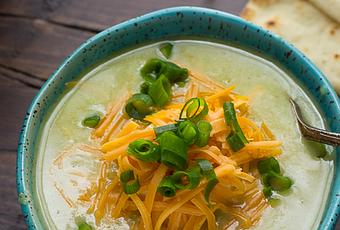 A healthy, creamy, comforting soup made with potatoes, roasted poblano peppers, and aged cheddar.