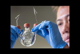 Yi Cui holding the new lithium-polysulfide