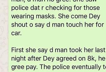 The incident attracted policemen who took them to a nearby police station where she confessed to lying against the man. According to the sex worker, she was broke and needed someone to fall for her scam.