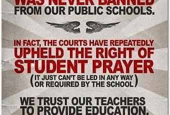 I'm tired of right-wing fundamentalists spreading this lie. Prayer was never banned in schools -- not in any state or community in this nation. All the Supreme Court said was that government (and public schools are a branch of government) could not favor any religion over any other religion, and could not force students to participate in any religious activity (like prayer). And the Supreme Court didn't invent that. It's part of the First Amendment to the Constitution. But any student (or teacher or school employee) can pray to their hearts content, whether in school or not. That's just the way that religious freedom works.