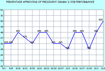 The chart above was made from the daily presidential approval survey done by the Rasmussen Poll.