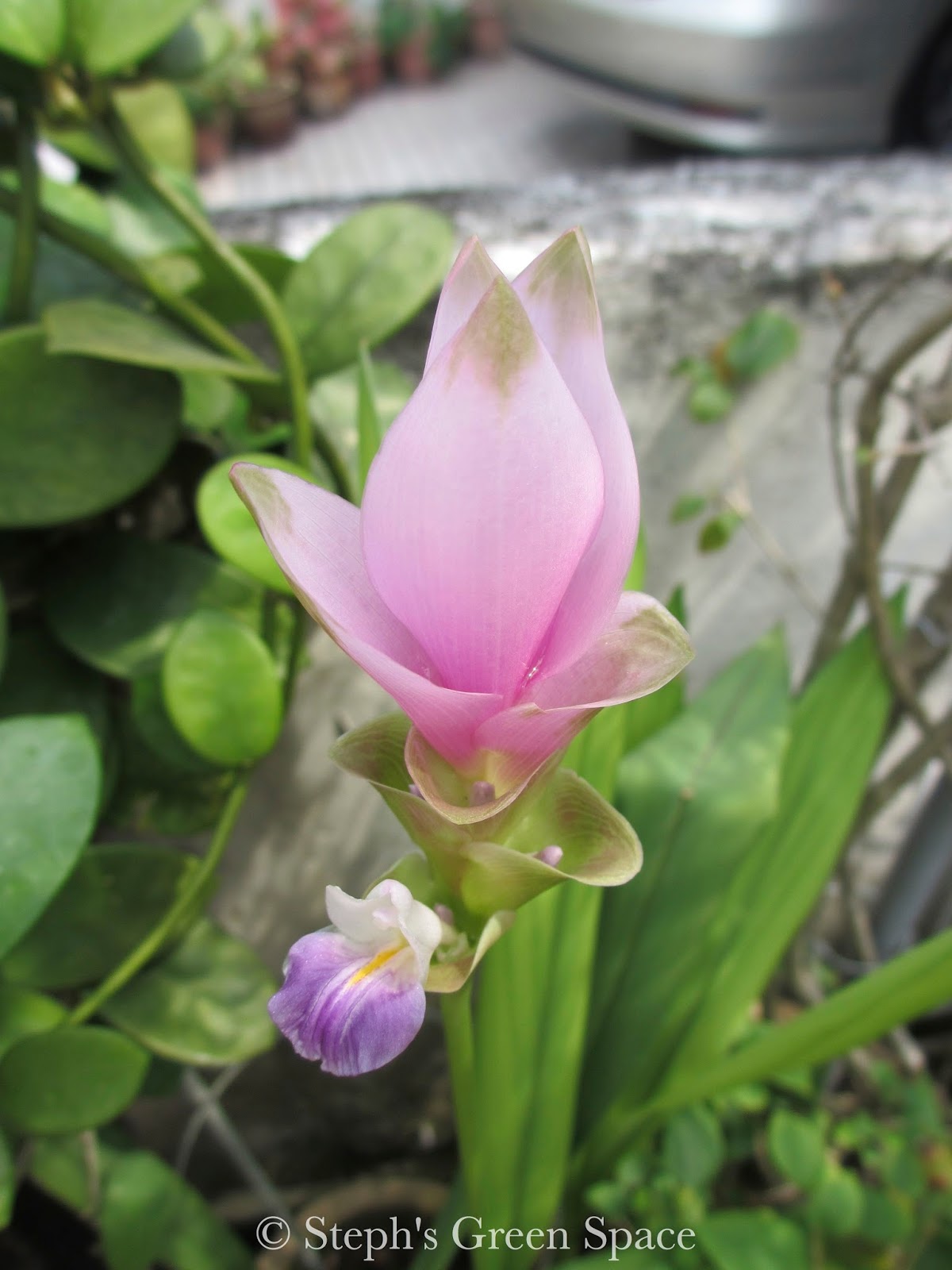 My Siam Tulip, I have always enjoyed its blossoming inflorescences. I think they look a little like lotus - very pretty! They add pops of bright pink to the garden. The bloom you see in the pic below unfortunately was short-lived as the heavy rain that has been pouring and pouring smashed it ;-(