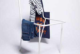 Thing Industries launched at the 2013 ICFF with six clever furniture and home goods: a bear-shaped Rorscach-like rug, a very furry footstool, a series of stackable, modular tables. The pieces that most tickles our fancy is a witty take on the occasional bedroom chair—the one Most Likely To Collect Detritus. In this case, the chair's frame is the entire structure, making for a seat-shaped rack ideal for holding clothes, magazines, or whatever castoffs may come its way.