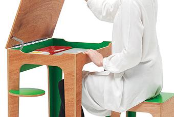 Traditional English school desks were the inspiration behind London-based Japanese designer