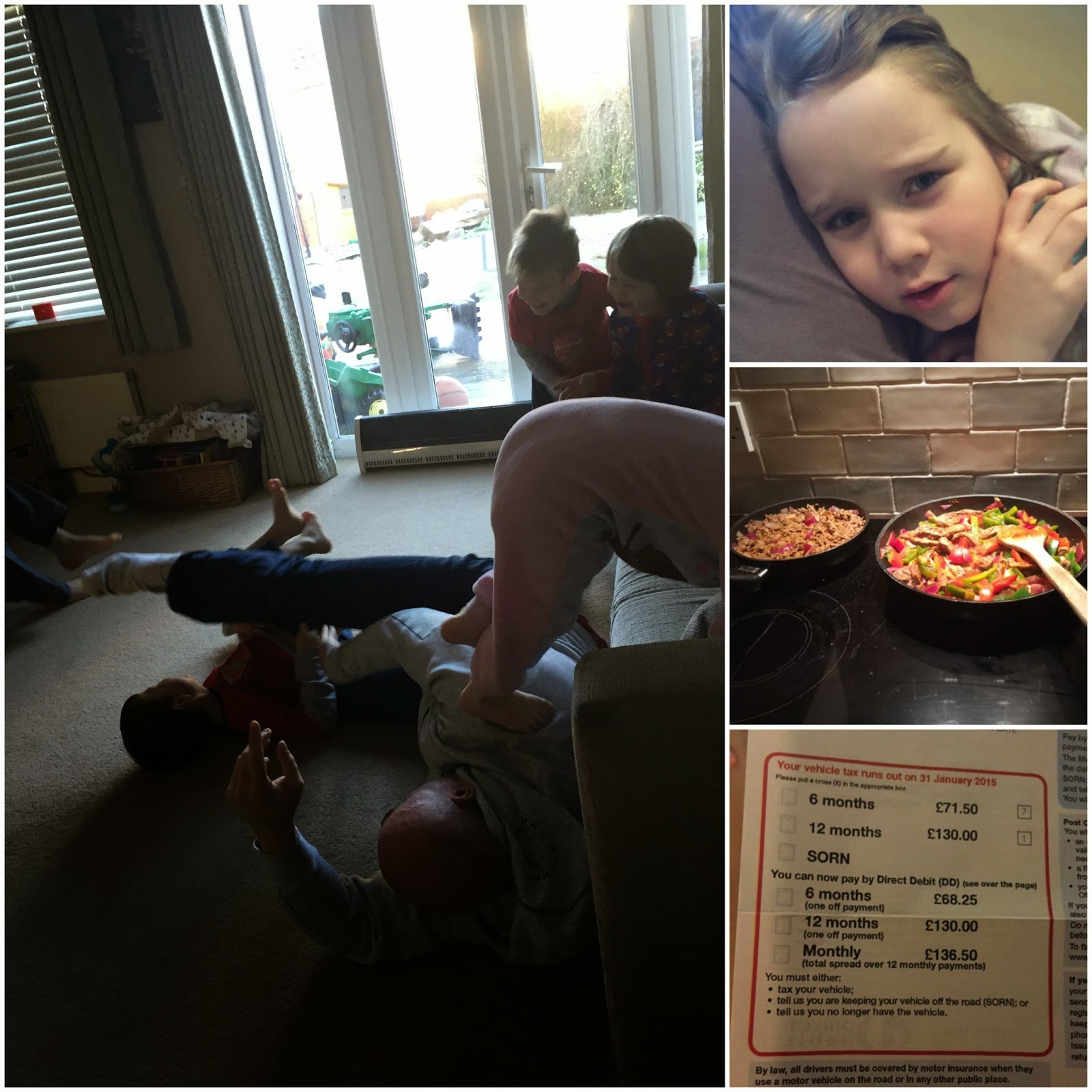 Sunday we had some morning craziness with the kids and my nephews jumping, rolling and bundling on hubby. That was a loud half an hour full of laughter and screams of excitement. Liam's football match was called off due to the frozen pitch.