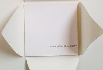 Emilie Giboin's latest promo came folded in heavy white paper stock.