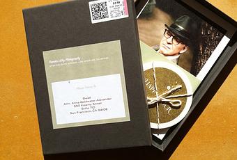 Open box of the cocktail promo package sent from Los Angeles based photographer Pamela Littky.