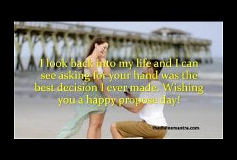 - I look back into my life and I can see asking for your hand was the best decision I ever made. Wishing you a happy propose day!