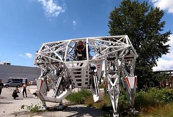 Imagine these giant mech suits racing down a parkour course with obstacles and heavy objects to push or pull, and you have an idea of where the sport is going. "The goal was to make the most rudimentary walking machine possible," says Jonathan Tippett, co-founder and chief test pilot. "We had four legs because the pilot has four limbs and the machine has the wide stable form factor so that it can be easily balanced."