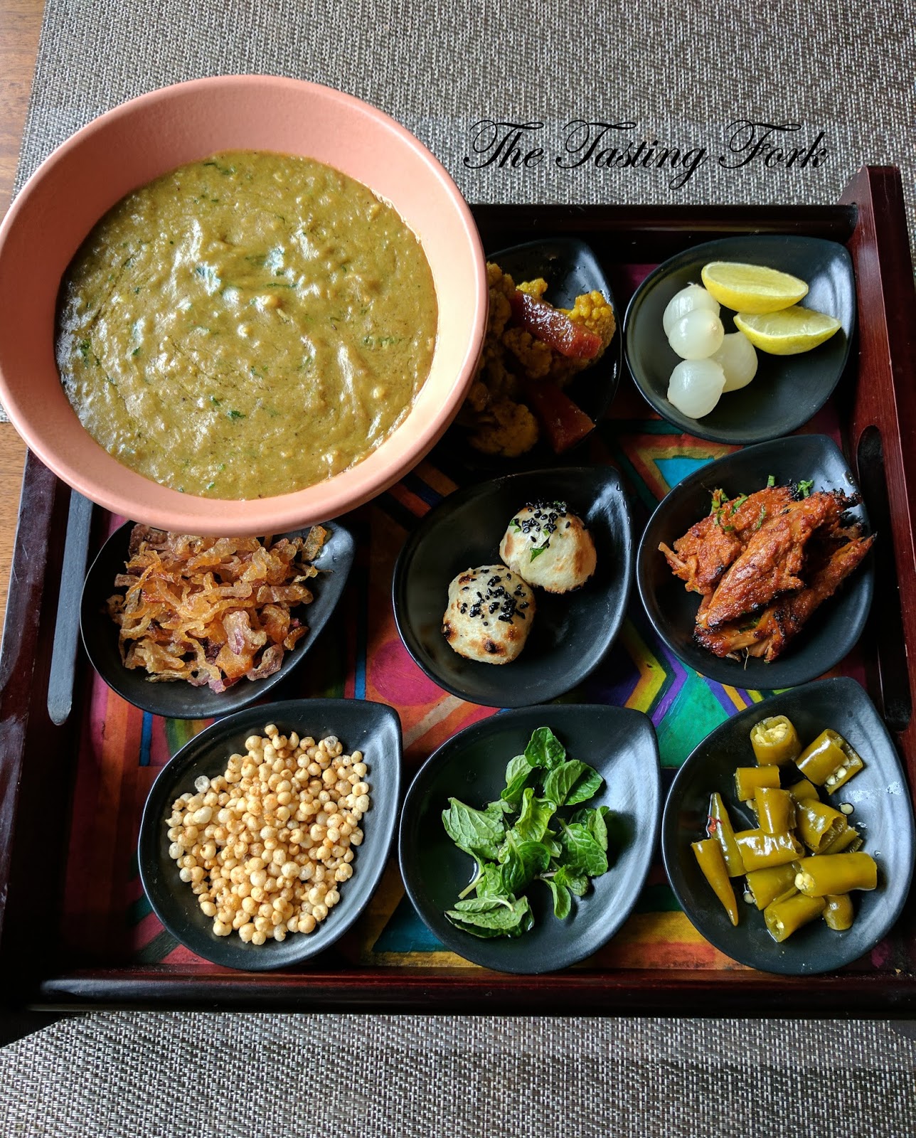 The main course is even better than the appetizers. Hands down if there's only one dish you have the place in your tummy for at Punjab Grill Tappa, it should be the Haleem Khao Suey. Comes with an entire platter with condiments, just like in a traditional khao suey, and you've got to mix them all together based on your taste. Great great fusion of khow suey into haleem and it tastes simply incredible!! Vinegar chillies, fried onions, onions, basil, pickle, lime and a smaller version of makhaane are all the condiments. In a bigger bowl is the haleem, and on the side with all other condiments is lamb which is so so flavourful. They do impeccable miniature-sized kulchas stuffed with paneer to go with the haleem, and I'd say the haleem tastes out of this world even by itself, without the kulchas. Cannot describe how mind-blowing this dish is. Must try!