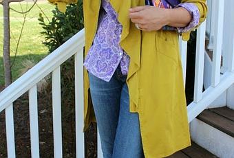 Recently, I did a major purging and filled up bags with clothes and shoes, for both goodwill and my Poshmark closet. In the process of doing so, I salvaged this chartreuse trench and purple paisley top, that would have otherwise stayed long-lost, had I not spring-cleaned my closet.