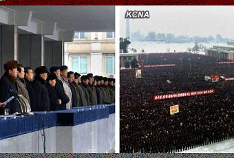 View of the platform and participants at a mass rally in Pyongyang on 5 January 2013 (Photos: KCNA)