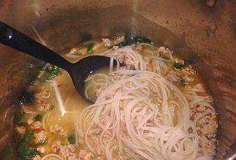 2. Bring chicken broth to a boil and add the rest of the sesame oil, plus salt and pepper to taste
