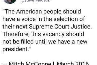 Senator McConnell must, must be held to his own standard. As of today, Saturday, September 19, it is 45 days from this next Presidential election. There should be NO NEW SUPREME COURT JUSTICE proposed this year by this President. It was good enough for Senator McConnell and the Republicans in 2016 with President Obama and Merrick Garland. The same should absolutely be held to today.