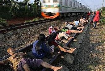 While it might look like they are protesting against something or staging a gruesome mass suicide, the people of Rawa Buaya are actually looking to cure their illnesses by laying on the train tracks. In the Indonesian town of Rawa Buaya, people believe that electrical energy carried by the railroad tracks can cure disease.