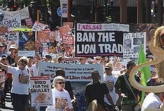 Wildlife campaigners joined rallies around South Africa Saturday in an international push to protect the lion and save the king of beasts from being raised in cages for “canned hunting”.