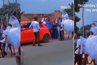 /Naija Gossip 247/Reactions As Bride Causes Traffic While Going For White Wedding With Convoy of Horses (Video)A young bride set the internet abuzz after a video of her heading to church for her wedding in grand style surfaced.
