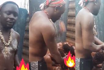 A video which surfaced online captures the moment a native doctor was performing a cleansing ritual for suspected fraudsters into Yahoo Plus.