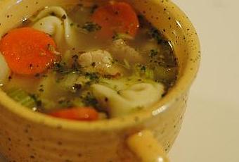 I also made my first soup of the Fall! I had coffee late the other night in order to stay awake for the 70 pages of Thoreau I had to read, which kept me wide awake well past the time I finished reading. So I was in the kitchen like a crazy woman at midnight, chopping and stirring and simmering until this delicious chicken noodle soup with cheese tortellini was done! All you do is make a normal chicken noodle but add refrigerated tortellini instead of the regular noodles. It's so-so-so good, especially right after walking home in the rain from classes.