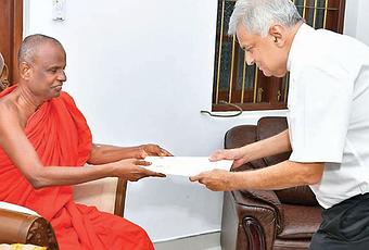 President Ranil Wickremesinghe yesterday arrived at the Anuradhapura Sacred city and received the blessings of Atamasthanadhipathi and Chief Sanghanayake of Nuwara Kalaviya Most Ven. Pallegama Hemarathana Thera. The President had a cordial discussion with the new Atamasthanadhipathi Thera. State Minister Shehan Semasinghe and Secretary to the President Saman Ekanayake were also present. Picture by PMD