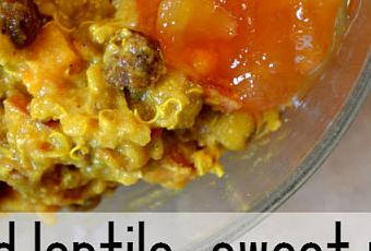 2tsp Turmeric1 tsp paprika2 tsp garlic powder¼ tsp cumin, ground or whole½ tsp chili powder½ tsp ground coriander¼ tsp cinnamon¼ tsp ground gingerpinch of cayenne1 bay leaf2 Tbsp coconut oil1 cup chopped onion1 small sweet potato, diced1 tomato, diced½ cup raisins½ cup quinoa½ cup lentils, rinsed2 cups vegetable broth1 container plain yogurt1. Start by heating the coconut oil on medium heat. Add the spices and bay leaf and cook till hot and fragrant. Stir them pretty consistently & careful not to burn them. Pour into small bowl and set aside.2. Add remaining coconut oil to hot pan and saute onions, sweet potato, and tomato for about 5 minutes.3. Add spice mix, raisins & lentils and stir to coat. Add vegetable broth. Make sure the broth covers everything by about 1/2 inch. If it doesn't, add some water.4. Bring to a boil, stir then reduce heat to low-medium. Simmer for about 20 minutes5. Add quinoa and cook for another 20 minutes, or until both lentils & grain are soft. 6. Remove from heat and stir in yogurt (this can be omitted to make the dish vegan!) Serve and enjoy!♠