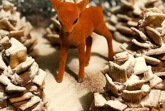 Add cereal to make the shape of the pine cone.