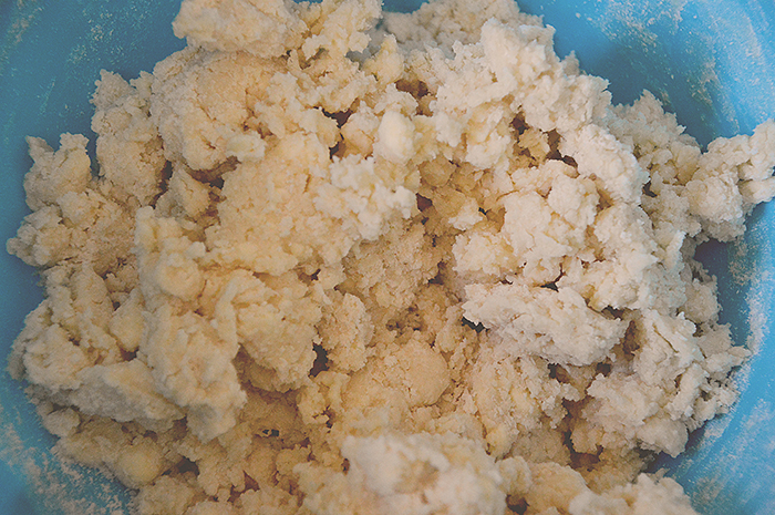 THREE Now mix in your sugar and gradually add in your flour too, combine together until it looks something like this... The people online said it should look soft and fluffy, mine looked more like scrambled egg, but hey, we work with what we've got..