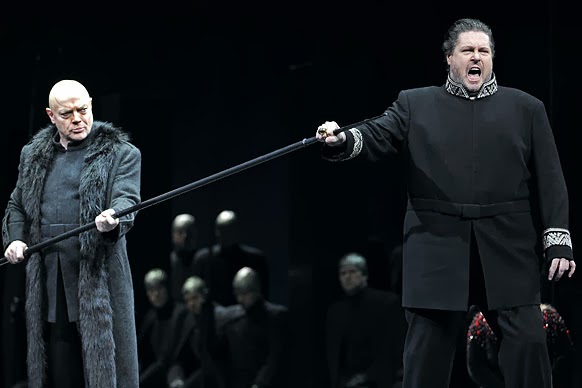 Getting the point: Siegfried (Stephen Gould) swears on Hagen's (Erik Halfvarson) spear in