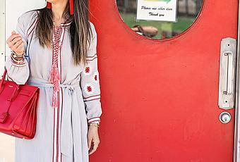 It's a fun pop of color for Winter as most embroidered dresses are colorful. Wearing it with a vest ( long vest, denim vest, or fur vest) will show off the sleeve detail. If it's a mini dress, then adding leggings will make it the perfect tunic! For this particular dress, I plan to wear it with a white faux fur vest and camel knee-high boots.