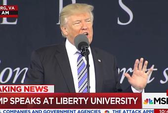 Liberty University, founded by a segregationist who defended Apartheid & blamed 9/11 on LGBT ppl, welcomes its 'dream president.'— John Fugelsang (@JohnFugelsang) May 13, 2017