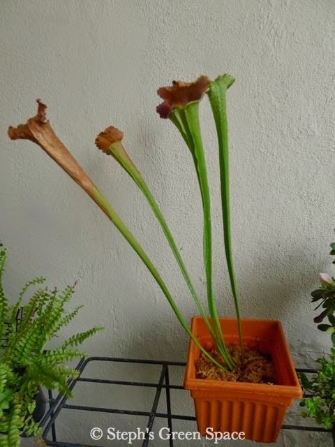 I have repotted many plants recently. One of them is my Sarracenia Juthatip Soper. It has not been flourishing well for a long time. Hence, repotted the plant into some new sphagnum moss. Do you think the plant look graceful?