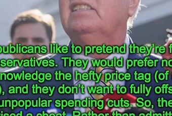 This is inconvenient. Republicans like to pretend they’re fiscal conservatives (at least some of the time). They would prefer not to acknowledge the hefty price tag, and they also don’t want to fully offset it with unpopular spending cuts.