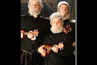 The story will be recognizable to anyone even vaguely familiar with the Quixotic quests set forth by Cervantes. The Quixotes careen into (off-stage) windmills, insisting they are fearsome dragons to be slain, pursue the kitchen wench/virginal maiden Dulcinea and bond with the loyal, if somewhat doltish sidekick Sancho. They also play ukuleles (the musical interludes, penned by composer Pamela Maurer, are truly lovely in a vaguely melancholic sort of way as befits the Knight of the Woeful Countenance) and pretend to be cowboys. As to the latter: Dawn, Quixote is as much informed by the spaghetti western aesthetic as it is by Cervantes. There are musical snippets from vintage Eastwood films, gun-play straight out of the OK Corral and small herds of (imaginary) horses .